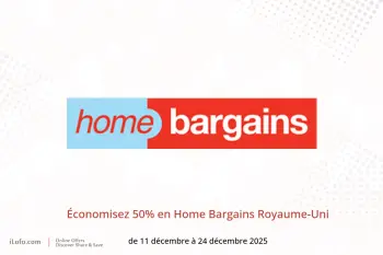 Home Bargains Royaume-Uni annonce de nouvelles réductions intitulées « Économisez 50% » disponibles jusqu'au 24 décembre 2025, de nouvelles offres et prix uniquement en Royaume-Uni.